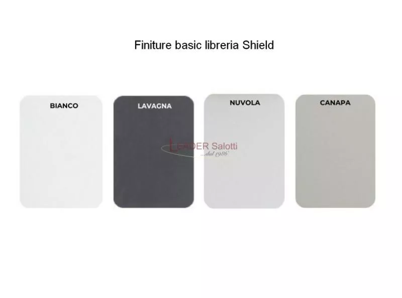 Ripiani: Pannello nobilitato in tutte le finiture. Fissati ai fianchi tramite reggipiani bloccanti. Spessore cm 3